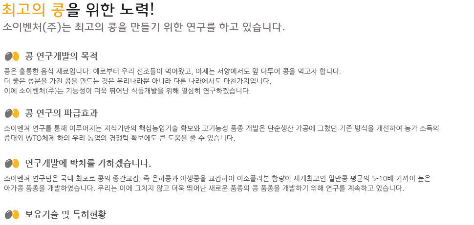 | 품종보호 아가콩2호 | 2008. 06. 17 | 품종보호 제 2269호 |
