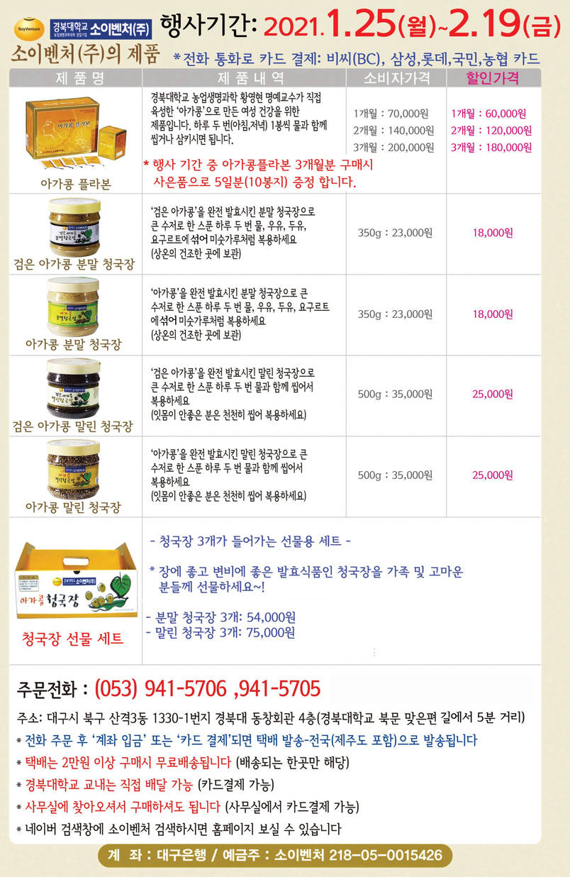 이십일 앞으로 다가온 구정 명절을 앞두고 소이벤처의 '아가콩' 제품 할인행사를