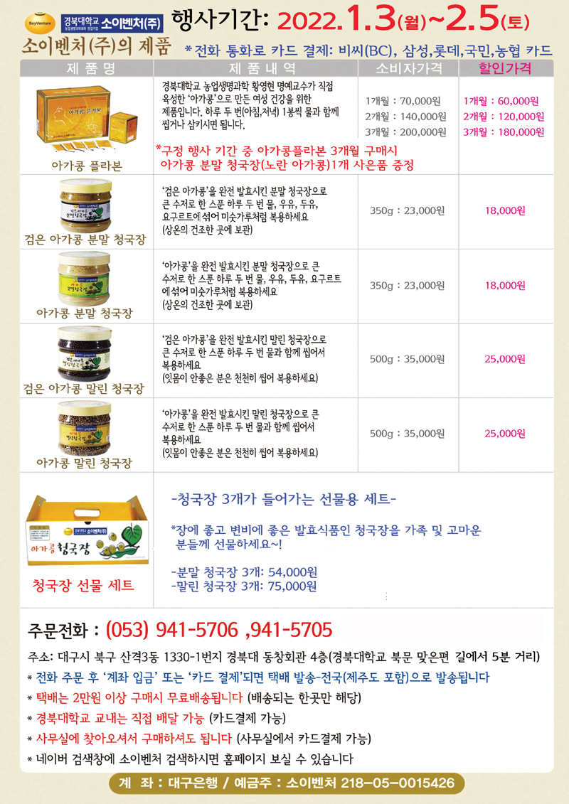 이십일 앞으로 다가온 구정 명절을 앞두고 소이벤처의 '아가콩' 제품 할인행사를